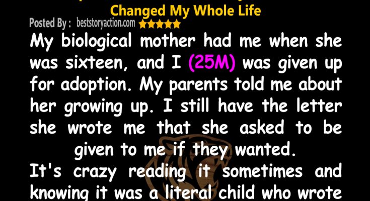 She was 16 when she had me. Just a kid herself. I still have her letter. It’s written in blue ink and folded neatly inside a pink envelope with a tiny teddy bear sticker on it. Sometimes I take it out and read it, and every time, it hits me hard. In it, she said, “I’m sorry I couldn’t be your mommy, but I hope you grow up happy and loved.”