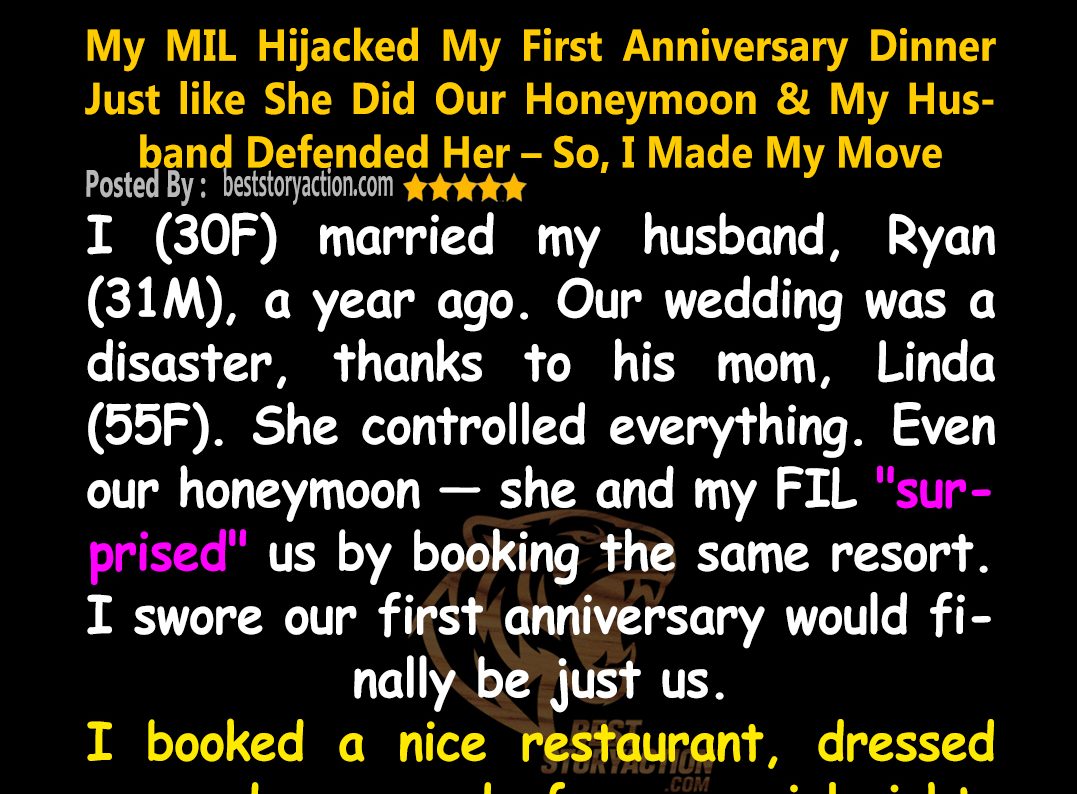 I thought I married the man of my dreams, until his mother kept showing up uninvited. From our honeymoon to our anniversary dinner, she made sure I was never alone with my husband long enough to realize the truth.