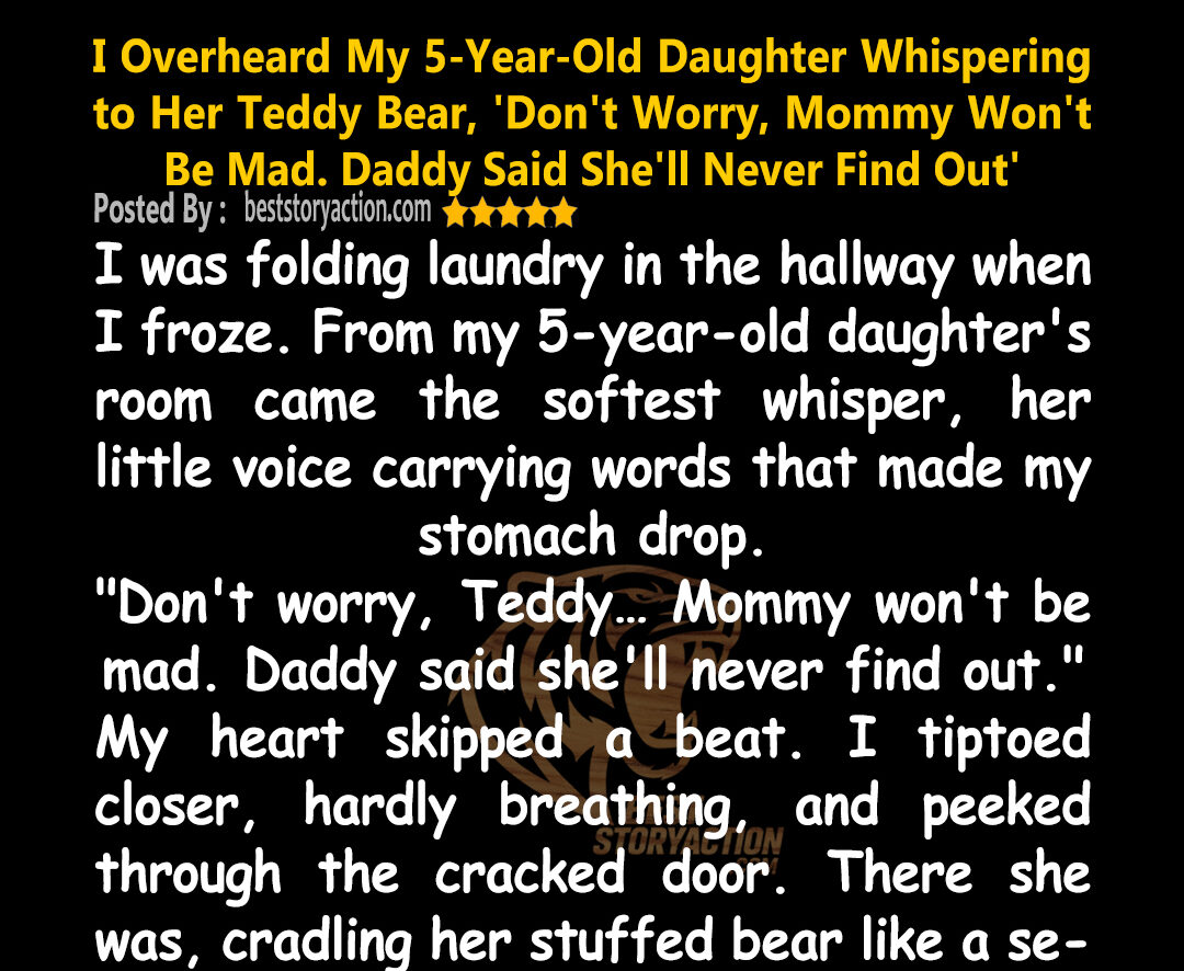 When I heard my five-year-old daughter whispering secrets to her teddy bear about daddy’s promises, I thought it was just innocent child’s play. But her trembling voice carried words that would unravel everything I believed about my marriage. What started as curiosity about a whispered conversation became the discovery that shattered my world completely.