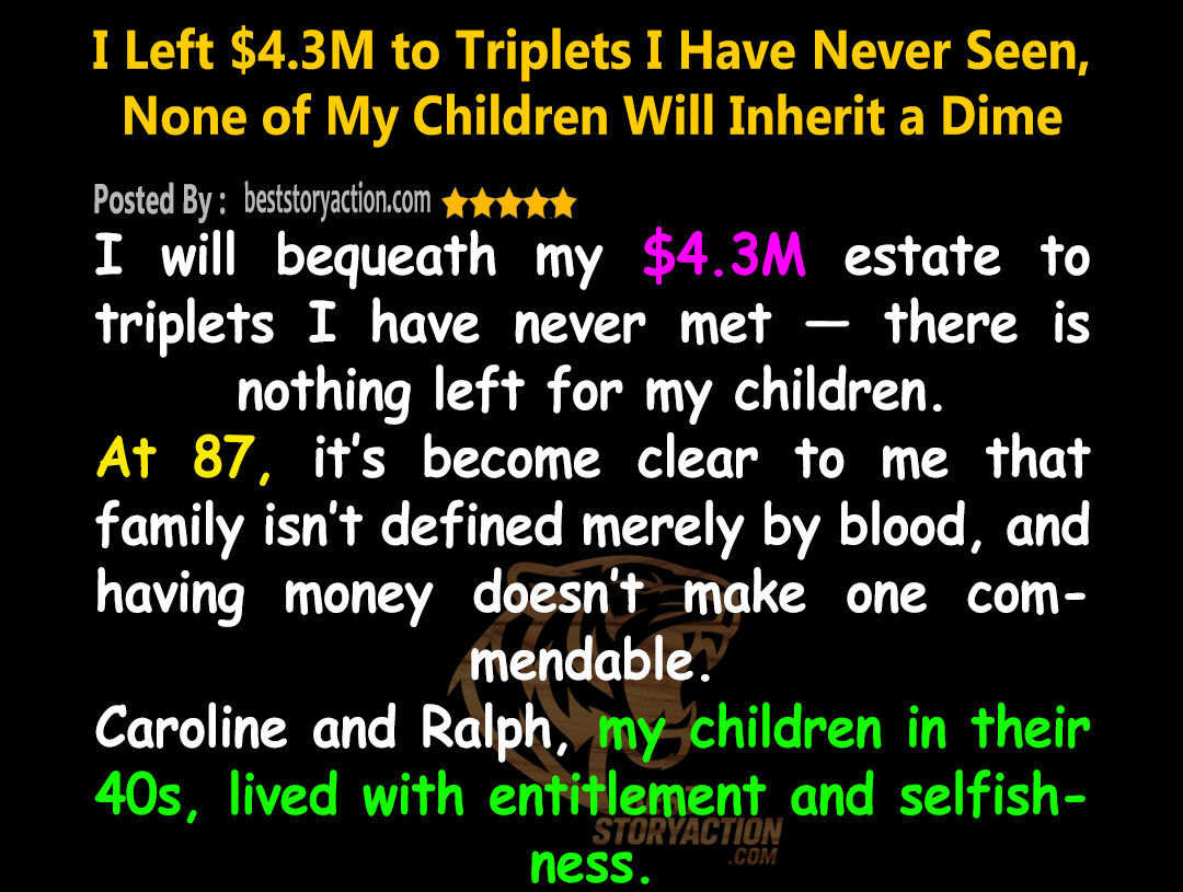 At 87, I left my $4.3M fortune to three young boys I’ve never met. My greedy kids called my lawyer to ask if I was dead yet so they could inherit my estate. They were about to discover who these triplets really were, and why I owe them everything.