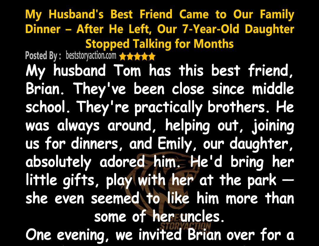 When my husband’s best friend, Brian, came over for a casual family dinner, I never imagined it would change our lives forever. But after that night, our daughter stopped speaking, and as the silence stretched on, we uncovered a devastating betrayal that shattered her innocence.