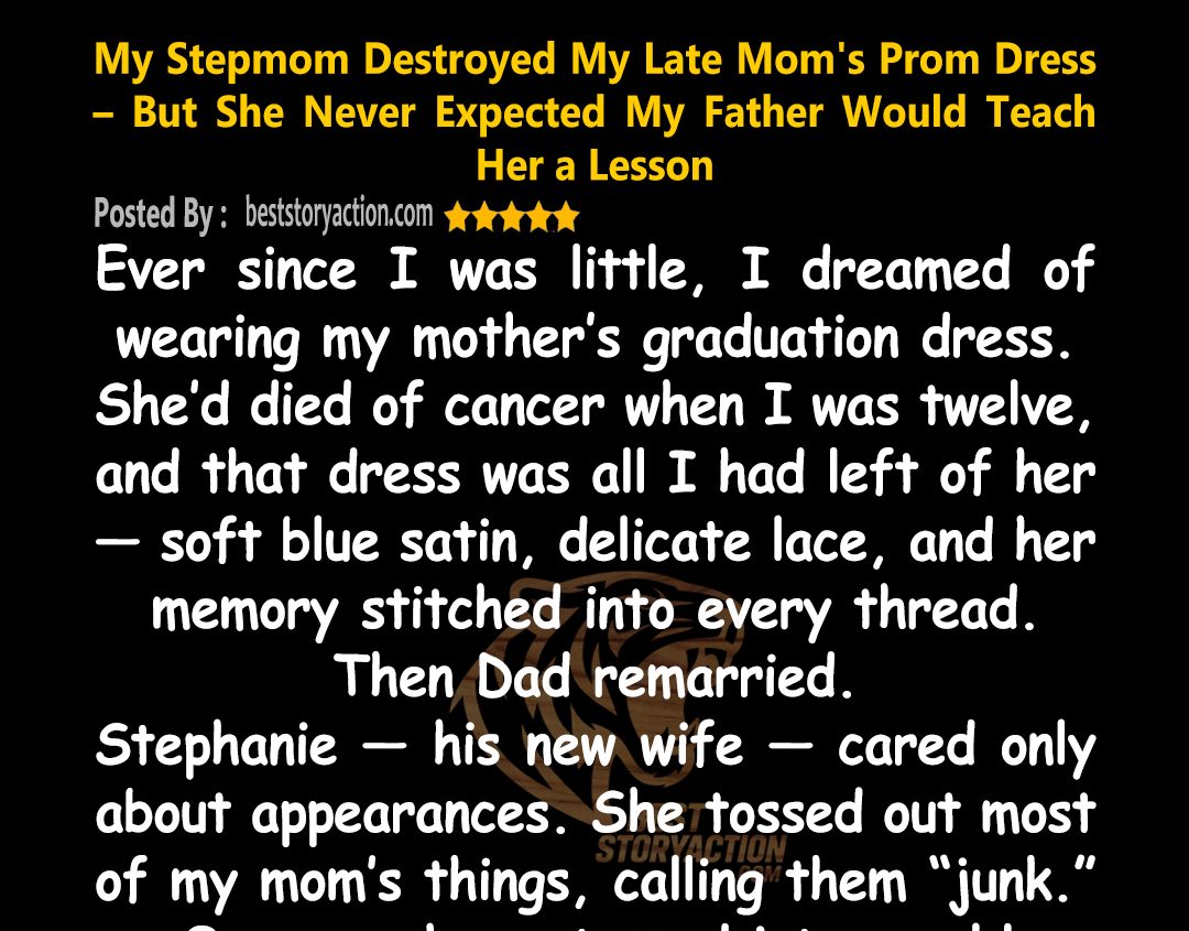 Prom night was supposed to be magical, but one act of cruelty nearly shattered everything. What my stepmom didn’t know was that love, memories, and a father’s quiet strength don’t break so easily.
