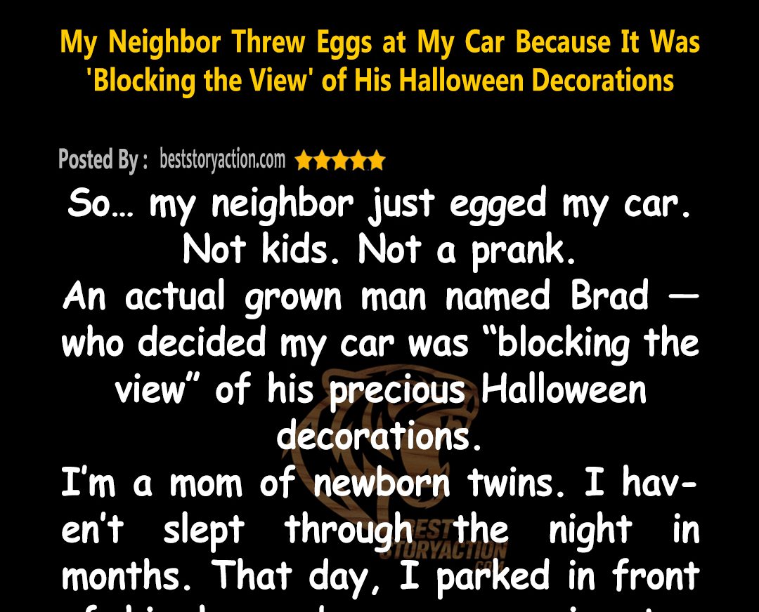 I stared at him, stunned. “You egged my car because it was parked in front of your house? You didn’t even ask me to move it, you just ruined it?”