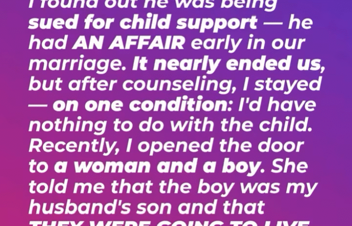 My mind raced as the woman introduced herself as Sadie and told me that the boy, Fred, was my husband’s son. Before I could process this information, she dropped another shocker.