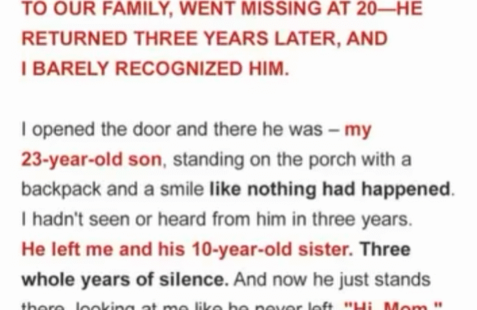 My son was a storm that tore through our lives and left nothing but heartache. When he vanished at 20, I thought I’d never see him again. But three years later, the knock on my door told a different story. My son returned home, but I wasn’t sure if I was ready for who he’d become.