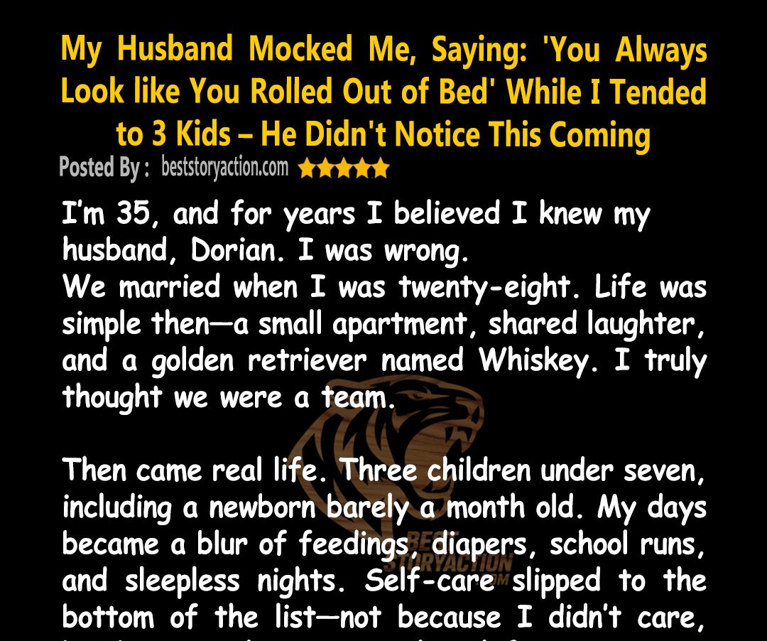 “The kids need a mother who respects herself, Dorian,” I said, pausing in the doorway, my hand resting on the frame. “They need a mother who shows them that love doesn’t mean swallowing cruelty. I’ll be damned if Emma grows up to accept insults, and I’ll be disappointed if my sons end up like you.”
