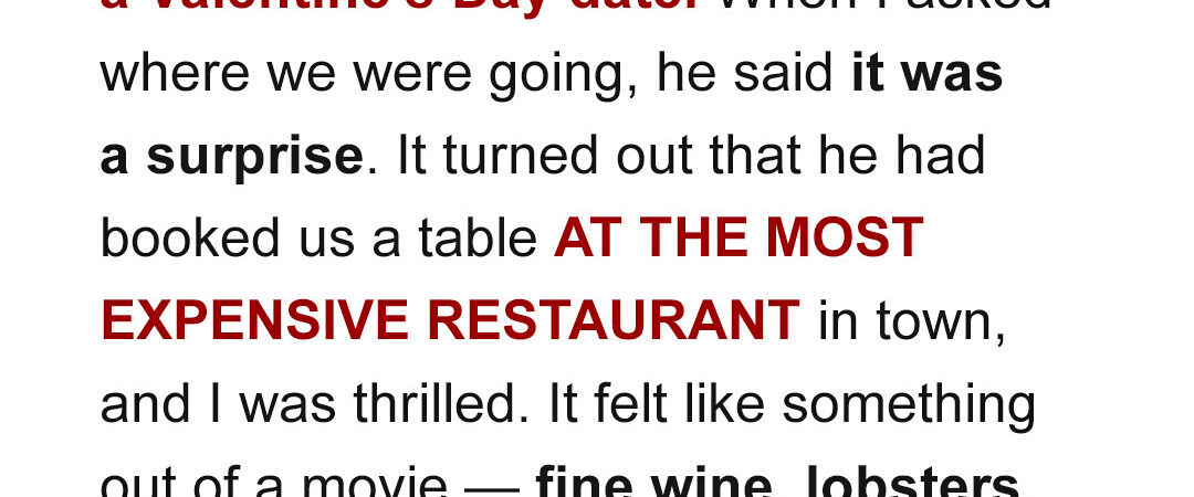 He looked in his element when he ordered everything—fine wine, lobster, oysters, and risotto with white truffles! I barely touched my food, only eating a little here and there. Something felt off, and I kept thinking about being judged as a gold digger.