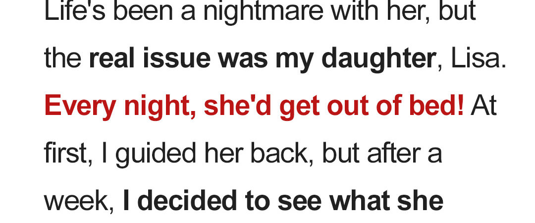 My mother-in-law Cynthia moved in, and soon after, my daughter Lisa began acting oddly. She was no longer her cheerful self, and it worried me deeply. One night, I saw her sleepwalking through the house, clutching her teddy bear. I quietly followed her, and what I discovered that night shocked me, leading to a bigger mystery I needed to solve.