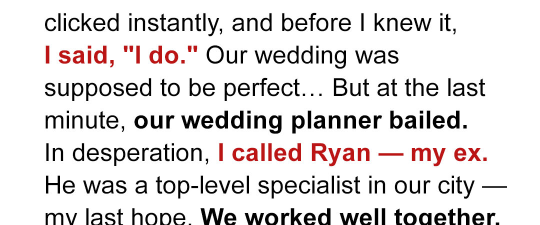 Emma thought she had everything under control, but when her ex—the last-minute savior of her wedding—suddenly disappeared, leaving only a letter behind, the cracks in her carefully planned day started to show. What could Ryan’s letter reveal, and why was Matt looking at her like he already knew?