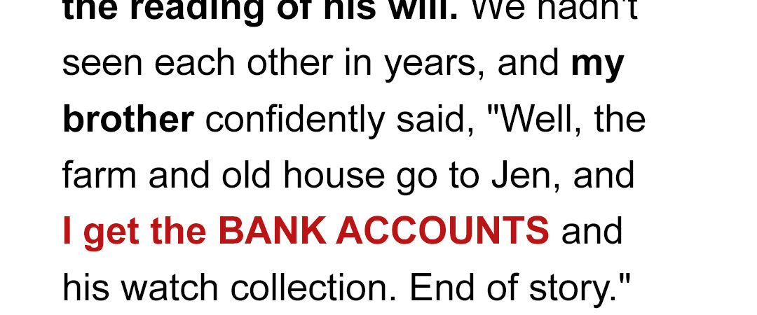 The thought of him inheriting the farm made me grip my coffee mug so tightly one morning that it cracked.