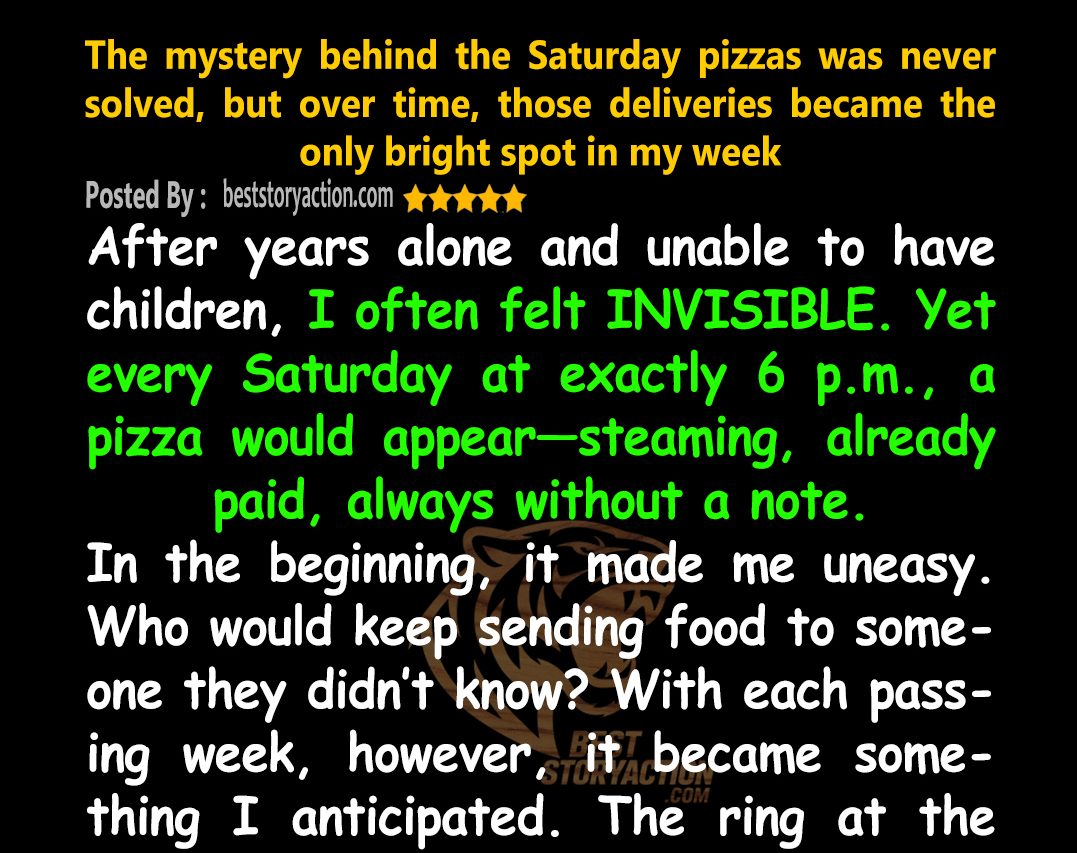 I never knew who kept sending me pizza every Saturday, but it soon became the only bright spot in my lonely weeks. I waited for the doorbell each time, until one night I opened the box and saw the words: “I know what you did 50 years ago.” I realized the past I had buried was no longer safe.