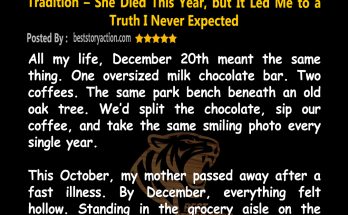 Every December 20th, my mother and I shared one perfect ritual: a giant Hershey’s bar, two coffees, the same park bench. She died in October. When I went alone for …