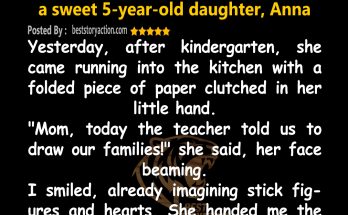 I thought my five-year-old’s family drawing was just another fridge masterpiece — until I noticed the extra child she sketched holding her hand. She smiled and told me, “That’s my …