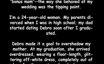 My dad’s new wife was fixated on replacing my mom and insisted on the title “bonus mom”—the way she behaved at my wedding was the tipping point. I’m a 24-year-old …